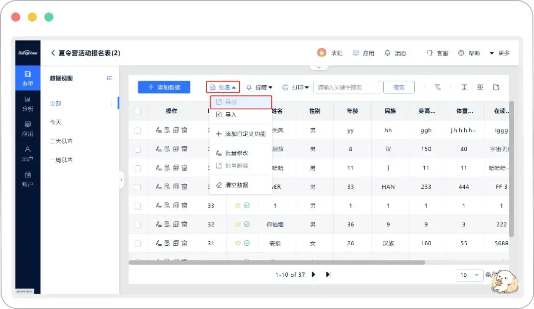 表单数据可以导出相信大家都知道,但可以导出指定的字段数据大家知道吗?有时候表单数据比较多的时候,整张表都导出的话就比较坑爹了,我只是想要两列的内容,而你却给了我整个世界,这时候就需要导出指定字段的数据了。