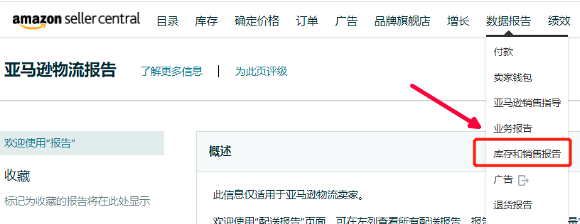 Step1:打开我们的后台,点击“数据报告”选择“库存和销售报告”