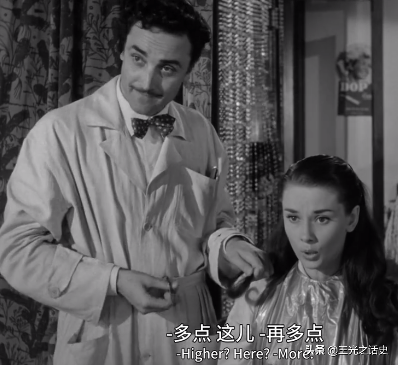 理发师和安妮公主。该片上映之后,赫本在片中的短发形象也成为潮流,被称之为“赫本头”。