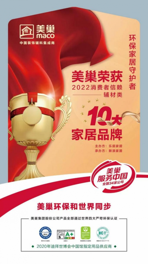 在信息化时代,消费者的消费感受和良好口碑,为品牌扩大市场奠定了良好基础。作为室内装饰辅料领域的龙头企业,美巢集团凭借着世界级环保产品和优质的服务,荣登“2022消费者信赖十大家居品牌”辅材类榜单,充分彰显了美巢在消费者心中的品牌影响力。
